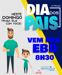 Neste domingo, dia 10.08.19 estaremos fazendo culto na EBD e comemorando o dia dos pais, Traga seu papai a vamos fazer festa com ele!!! Aguardamos sua presença!!!! Não perca!!!